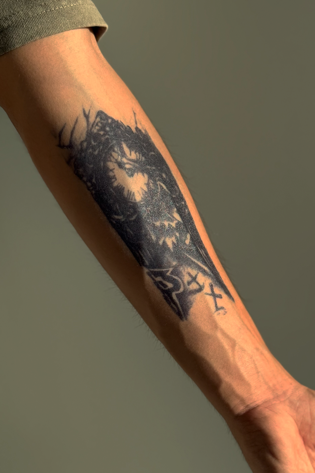 Inițial, tatuajul tău va avea o culoare deschisă. În primele ore după aplicare, tatuajul va începe să se închidă la culoare, devenind treptat o nuanță similară unui tatuaj real. Acest proces face parte din magia Inklabs!